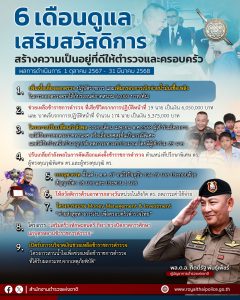 6 เดือน เสริมสวัสดิการสร้างความเป็นอยู่ที่ดีให้กับตำรวจและครอบครัว.ตั้งแต่วันที่ 1 ตุลาคม 2567 ถึง 3