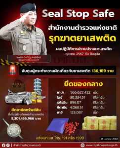 เดินหน้า Seal Stop Safe ปราบปรามยาเสพติดทุกมิติ.สถิติผลการปฏิบัติงานด้านการปราบปรามยาเสพติดของสำนักง