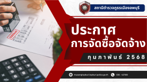 ประกาศ สภ.เมืองลพบุรี เรื่อง ประกาศผู้ชนะการเสนอราคาจัดซื้อน้ำมันเชื้อเพลิง โดยวิธีเฉพาะเจาะจงเดือน