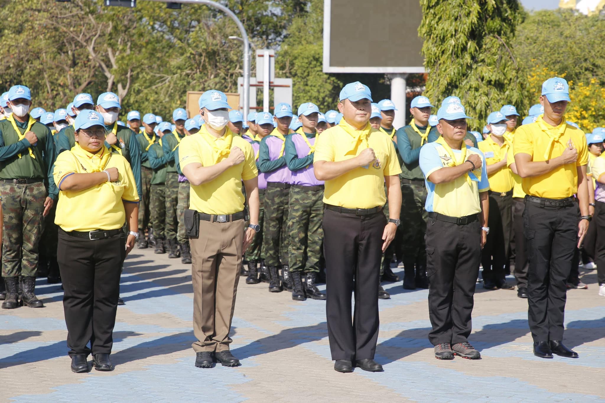 นายปรัชญา เปปะตัง รอง ผวจ.ลพบุรี (ประธาน) พร้อมด้วย หน.ส่วนราชการ, หน.หน่วยงานทหาร และประชาชนจิตอาสาในจังหวัดลพบุรี