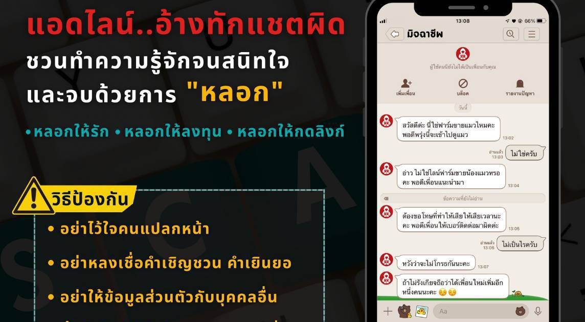 •หลอกให้รัก •หลอกให้ลงทุน •หลอกให้กดลิงค์