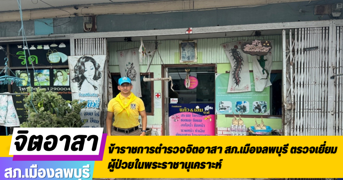 ร.ต.ท.ชูชาติ รักซ้อน รอง สว.(จร).สภ.เมืองลพบุรี และข้าราชการตำรวจจิตอาสา ข้าราชการตำรวจจิตอาสา สภ.เมืองลพบุรี เยี่ยมเยียน ตรวจเยี่ยม น.ส.พัสตราภรณ์ โพอุทัย ซึ่งป่วยเป็นโรคเส้นประสาทคู่ที่ 10 รั่ว ซึ่งเป็นผู้ป่วยในพระราชานุเคราะห์ อยู่ร้านเสริมสวยแก้ว&เจนบิวตี้ ต.เขาพระงาม อ.เมืองลพบุรี จ.ลพบุรี อยู่บริเวณเรือนรับรองที่ประทับศูนย์การทหารปืนใหญ่ค่ายภูมิพล