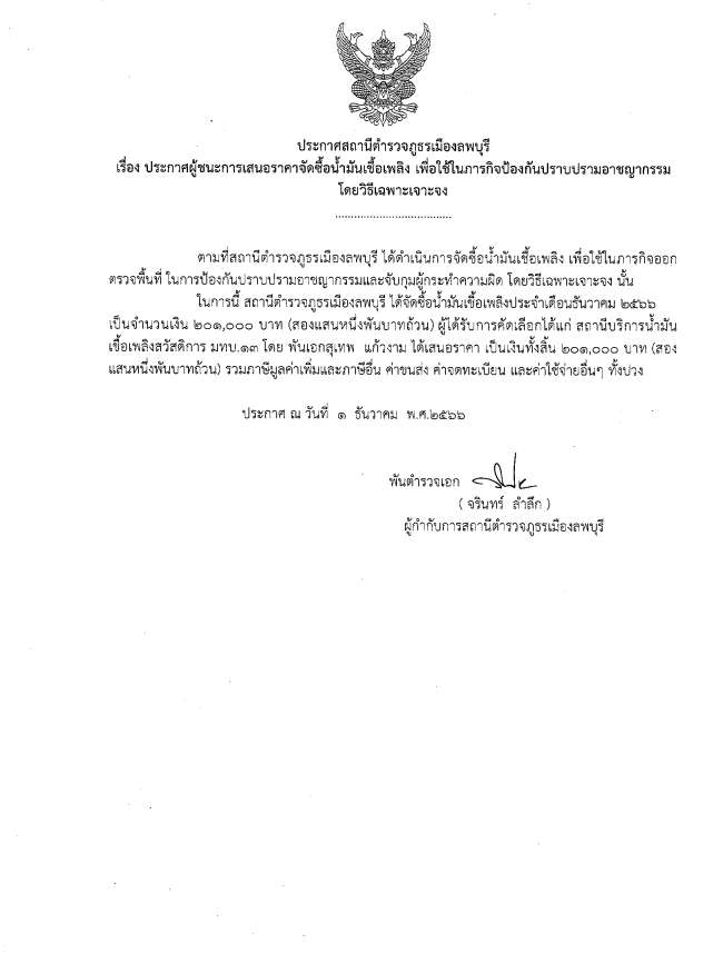 ประกาศจัดซื้อจัดจ้าง เดือนธันวาคม 2566 15 ธันวาคม 2566 โดย admin / ข่าวจัดซื้อจัดจ้าง,ข่าวจัดซื้อจัดจ้าง,งานงบประมาณแผนงาน ประกาศ สภ.เมืองลพบุรี เรื่อง ประกาศผู้ชนะการเสนอราคาจัดซื้อน้ำมันเชื้อเพลิง โดยวิธีเฉพาะเจาะจงเดือน ธ.ค.66 ไฟล์ PDF คลิกที่นี่