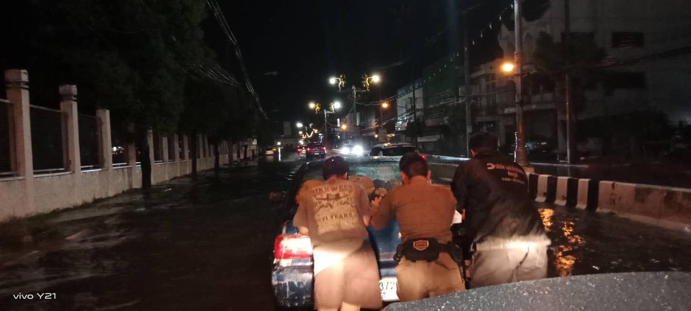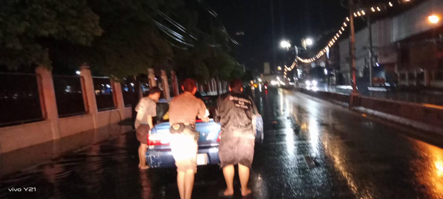 ช่วยเหลือประชาชนกรณีรถยนต์เสีย จากฝนตกหนักน้ำท่วมพื้นผิวจราจร