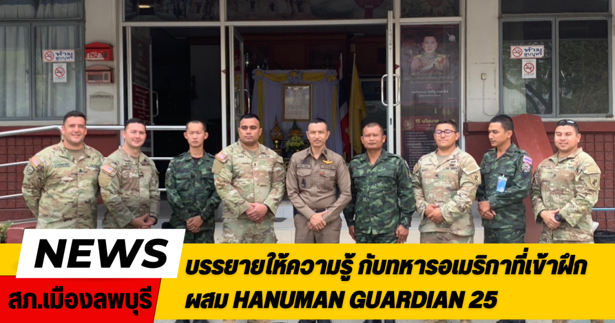 ในวันที่ 17 มีนาคม 2568 สภ.เมืองลพบุรี ได้บรรยายให้ความรู้ และแลกเปลี่ยนความรู้กับทหารอเมริกาที่เข้าฝึกผสม Hanuman Guardian 25 โดยมี พ.ต.ท.สมนึก คิดถูก รอง ผกก.ป.สภ.เมืองลพบุรี เป็นผู้บรรยายให้ความรู้ และแนะนำการทำงาน และสถานที่ของ สภ.เมืองลพบุรี
