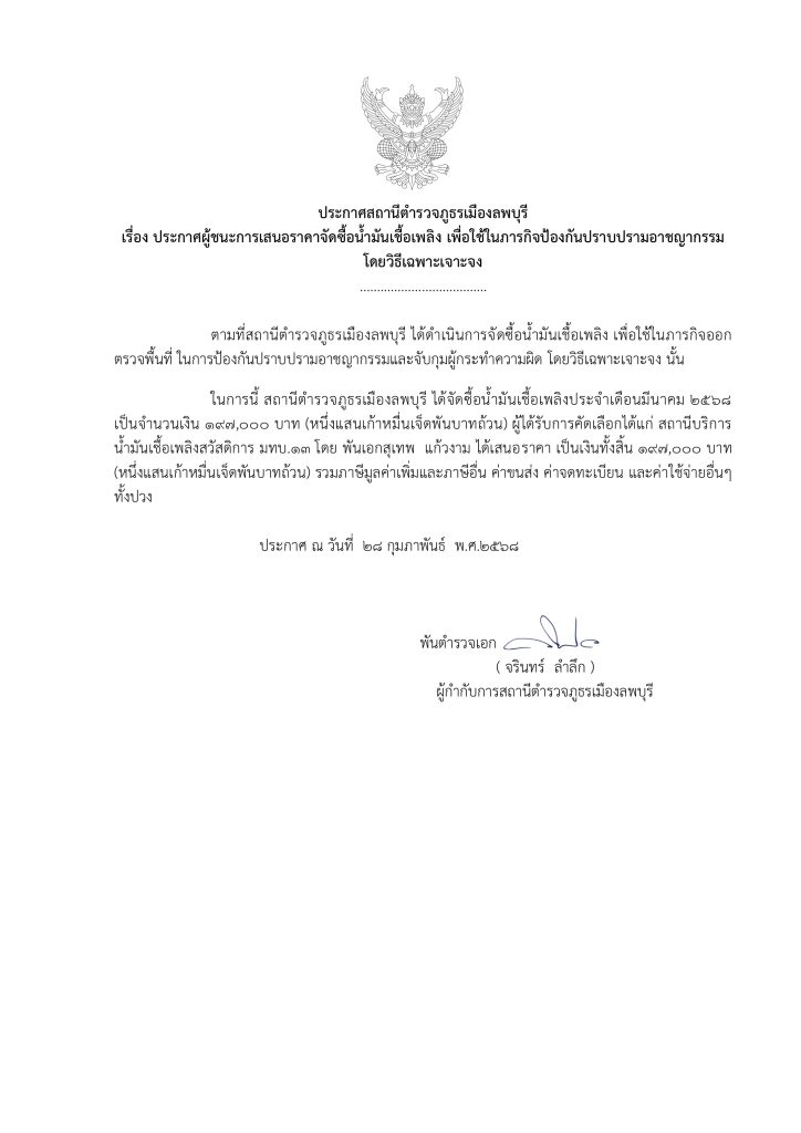 ประกาศจัดซื้อจัดจ้าง เดือนมีนาคม 2568 12 เมษายน 2568 โดย admin / ข่าวจัดซื้อจัดจ้าง,ข่าวจัดซื้อจัดจ้าง,งานงบประมาณแผนงาน ประกาศ สภ.เมืองลพบุรี เรื่อง ประกาศผู้ชนะการเสนอราคาจัดซื้อน้ำมันเชื้อเพลิง โดยวิธีเฉพาะเจาะจงเดือน มี.ค.68ไฟล์ PDF คลิกที่นี่ เอกสารเบิกเช่าเครื่องถ่ายเอกสาร เดือน มี.ค.68 ไฟล์ PDF คลิกที่นี่