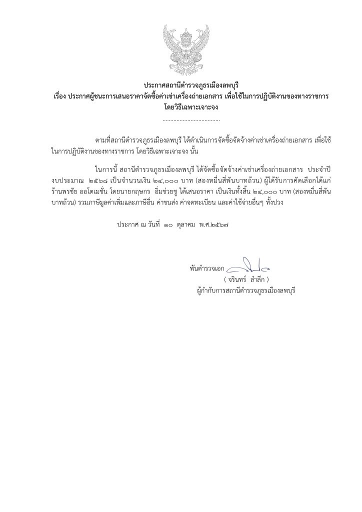 ประกาศจัดซื้อจัดจ้าง เดือนตุลาคม 2567 31 ตุลาคม 2567 โดย admin / ข่าวจัดซื้อจัดจ้าง,ข่าวจัดซื้อจัดจ้าง,งานงบประมาณแผนงาน ประกาศ สภ.เมืองลพบุรี เรื่อง ประกาศผู้ชนะการเสนอราคาจัดซื้อน้ำมันเชื้อเพลิง โดยวิธีเฉพาะเจาะจงเดือน ต.ค.67 ไฟล์ PDF คลิกที่นี่ ประกาศ สภ.เมืองลพบุรี เรื่อง ประกาศผู้ชนะการเสนอราคาจัดซื้อค่าเช่าเครื่องถ่ายเอกสาร โดยวิธีเฉพาะเจาะจงเดือน ต.ค.67 ไฟล์ PDF คลิกที่นี่ เอกสารการเช่าเครื่องถ่ายเอกสาร ไฟล์ PDF คลิกที่นี่ เอกสารเบิกเช่าเครื่องถ่ายเอกสาร เดือน ต.ค.67 ไฟล์ PDF คลิกที่นี่