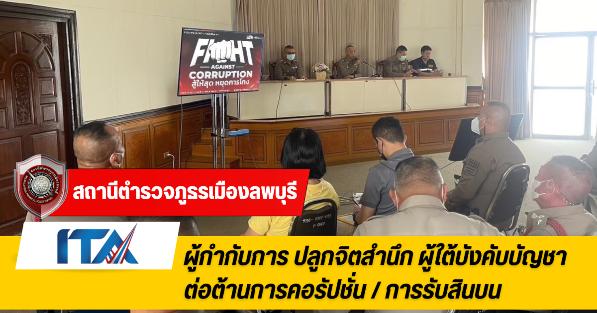 เข้าร่วมรับชมงานวันต่อต้านคอร์รัปชันสากลฯ ผ่านทาง Facebook ของ สำนักงาน ป.ป.ช. ณ ห้องประชุมชั้น 4 สภ.เมืองลพบุรี เพื่อเป็นตัวอย่างให้ผู้ใต้บังคับบัญชา แสดงถึงเจตนารมณ์ ต่อต้านการคอรัปชั่น ต่อต้านการรับสินบน และปลูกจิตสำนึกให้ผู้ใต้บังคับบัญชา ปฏิบัติตามนโยบายขององค์กร