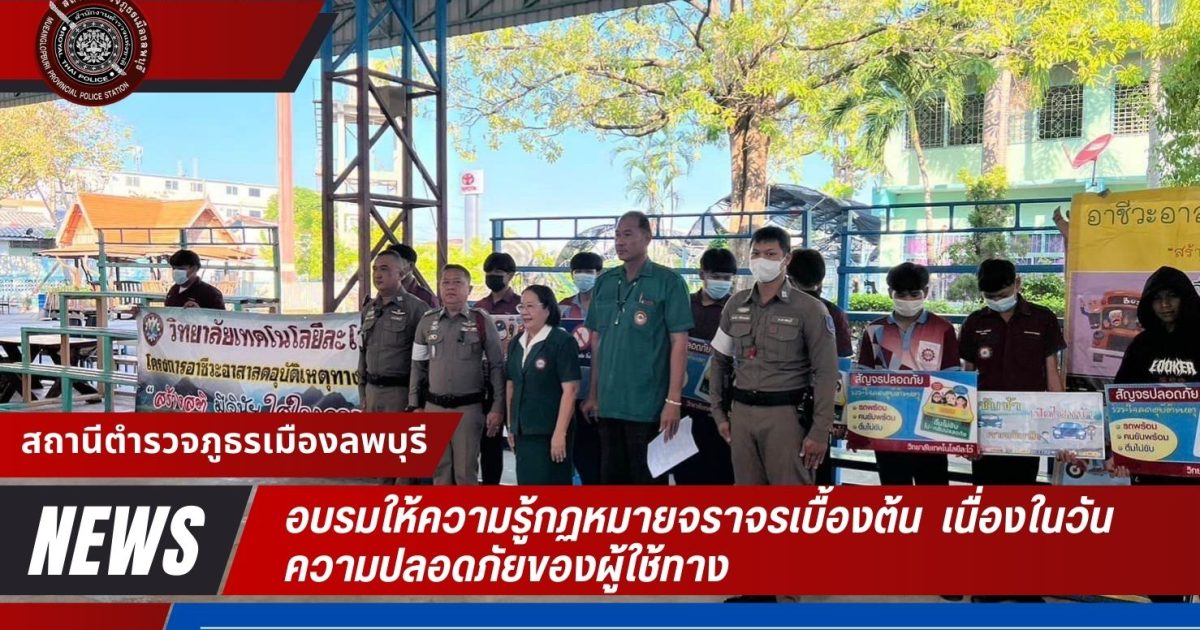 พ.ต.ต.เตชิต เขื่อนหมั่นสว.จร.สภ.เมืองลพบุรี พร้อมกำลัง จร.สภ.เมืองลพบุรี ได้อบรมให้ความรู้กฏหมายจราจรเบื้องต้น การใช้รถใช้ถนน ขับขี่ปลอดภัย เนื่องในวันความปลอดภัยของผู้ใช้ทาง แก่นักเรียน นักศึกษา วิทยาลัยอาชีวะละโว้ มีผู้ร่วมกิจกรรมประมาณ 400 คน เป็นไปด้วยความเรียบร้อย