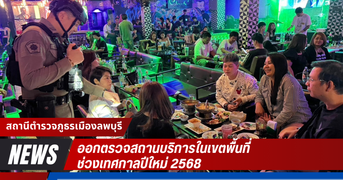 พ.ต.ท.เอกรัฐ สุจริต สวป. สภ.เมืองลพบุรี พร้อมกำลัง ปฏิบัติหน้าที่ออกตรวจสถานบริการในเขตพื้นที่ ช่วงเทศการปีใหม่ 2568