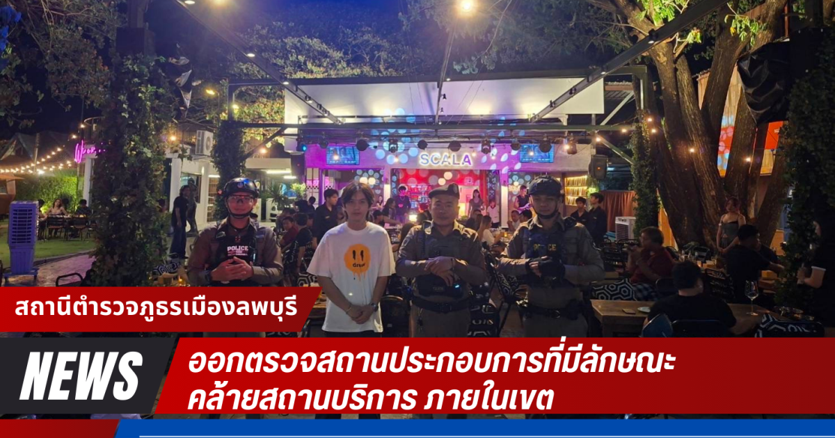 ร.ต.ต.สมนึก ลือชา รอง สว.(ป.) สภ.เมืองลพบุรี พร้อมกำลังสายตรวจรถจักรยานยนต์ออกตรวจสถานประกอบการที่มีลักษณะ