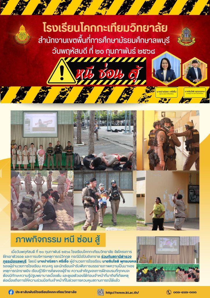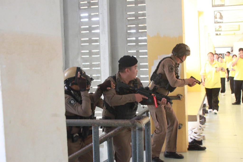 โรงเรียนโคกกะเทียมฯ จัดโครงการฝึกเอาตัวรอด และการบริหารเหตุการณ์วิกฤต กรณีมือปืนยิงกราด