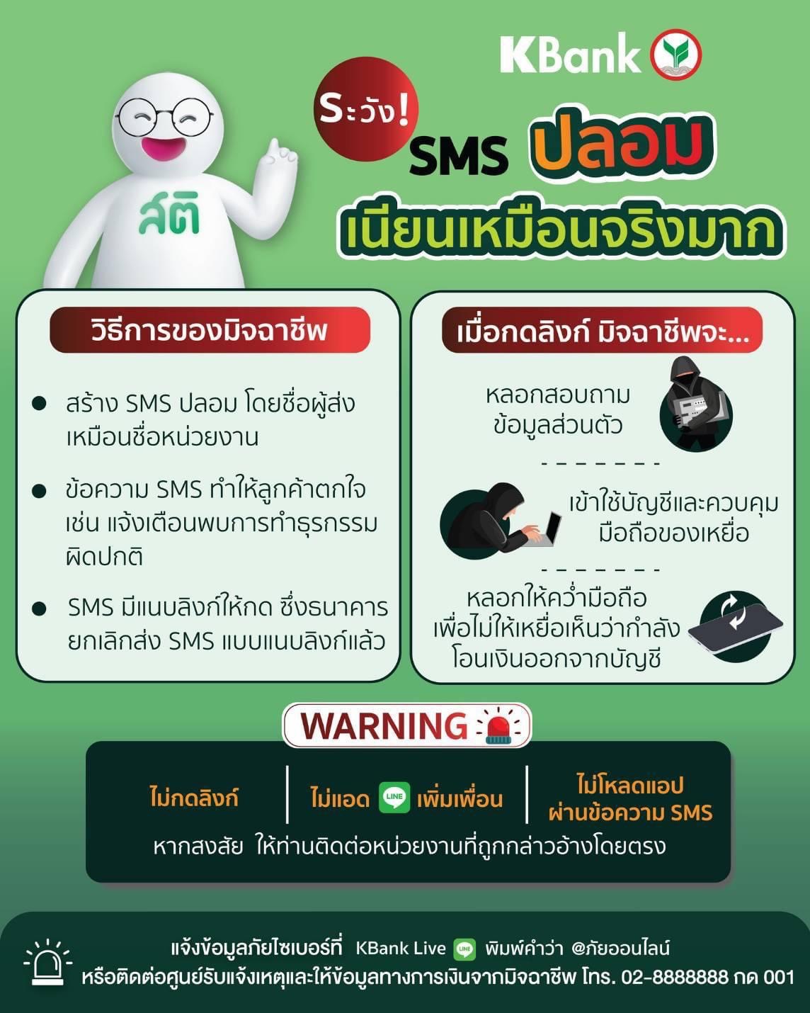 สถานีตำรวจภูธรเมืองลพบุรี ประชาสัมพันธ์ KBank ระวัง! SMS ปลอม เนียนเหมือนจริงมาก วิธีการของมิจฉาชีพ