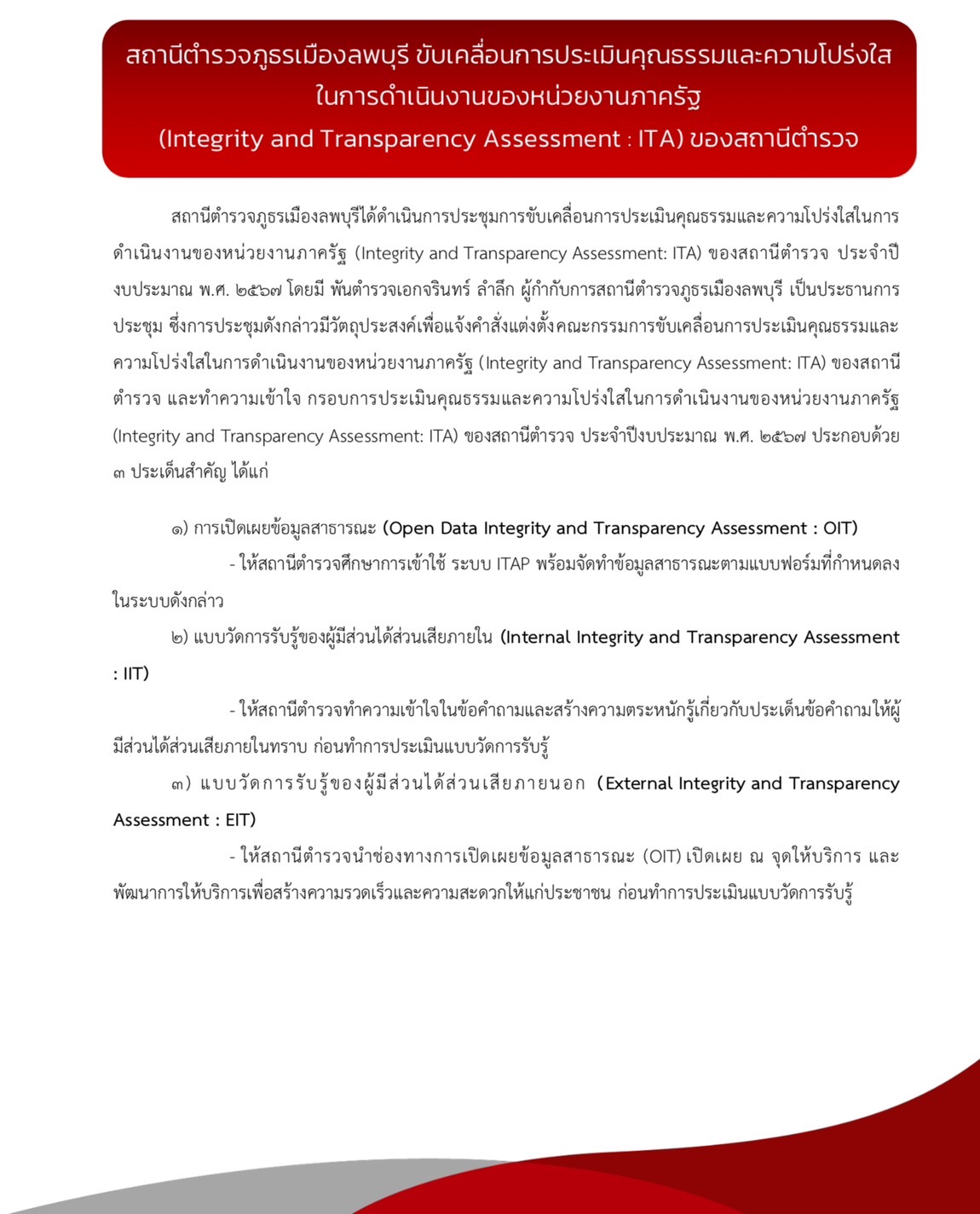 ประกาศนโยบายต่อต้านการรับสินบน (Anti-Bribery Policy) ร่วมกับ กต.ตร.สภ.เมืองลพบุรี